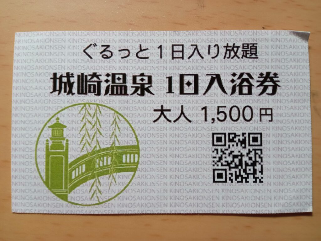 公共駐車場に車を停め、初めに向かったのは、一の湯。ここで、城崎温泉1日入浴券(1,500円)を購入します。3か所入ればお得なチケットで、街のマップももらうことができます。タオル・バスタオルは有料になり、最後に入った場所で返します。