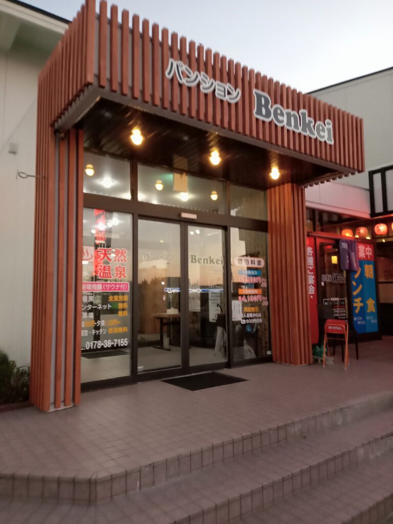 予定通り八戸港には18:00に着きました。まずは、宿泊先へ。今回お世話になるのは、八戸港から10分くらいで行くことができたパンション弁慶。居酒屋が併設しているところで、部屋は小さいですが綺麗な印象。アニメティ類はなく、持っていない場合は有料となります。朝食だけ付けましたが、地元の魚などが出てきておいしかったです。