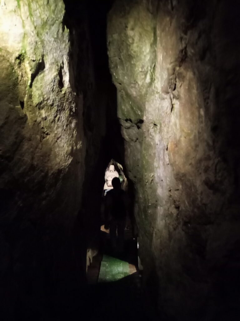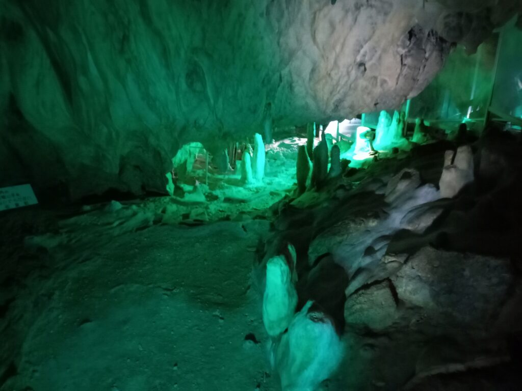 鍾乳洞を出たら、道路を挟んで向かいにある龍泉新洞科学館へ。ここは、鍾乳洞がよく発達している事や水流の痕跡が残っていて学術的に貴重な事から、科学館として公開されているところです。洞窟そのままを科学館とした、世界で初めての自然洞穴科学館となっています。先に回った龍泉洞よりも冒険的な要素は強いかなという感じです。