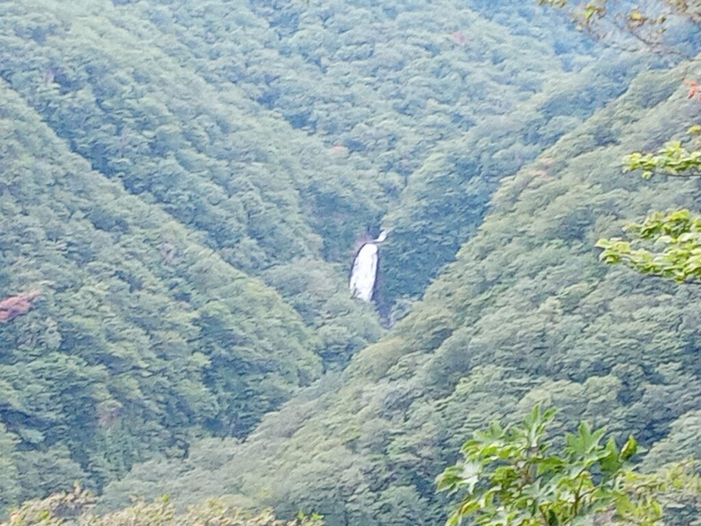 続いて滝見台へ。ここからは、3段に別れて流れ落ちる3階滝や落差50m以上の不動滝などを遠くから眺めることができます。
