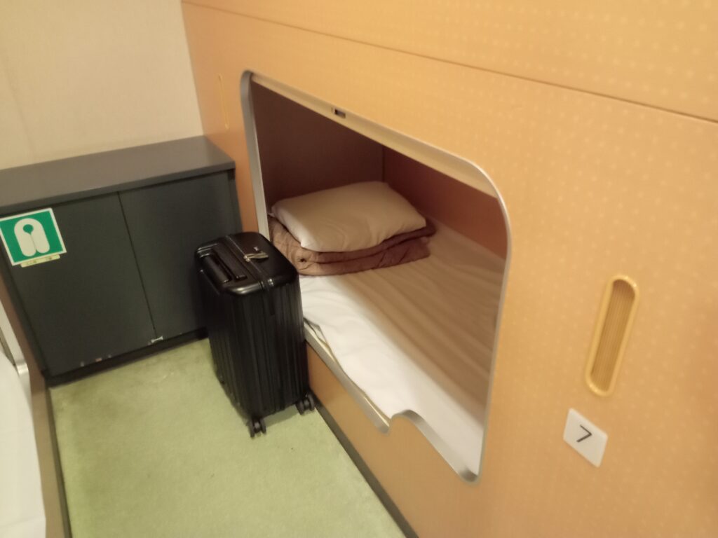 時間になったら乗船します。今回はゆっくり寝たいというのもあり、B寝台を予約。個人スペースがしっかり確保されているので、しっかり睡眠をとることができました。