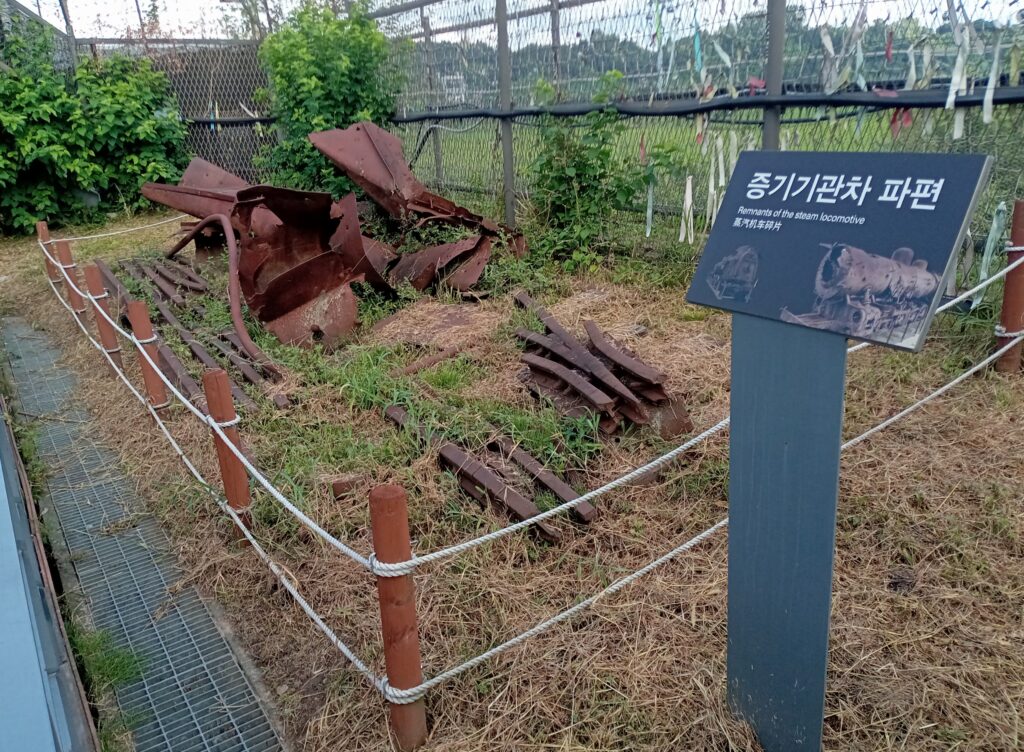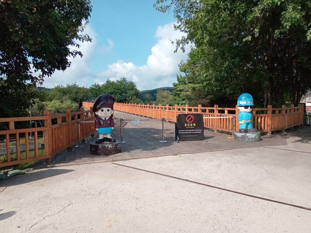 ソウル市街から国境沿いまでは1時間程。まずは、一般の人が許可なく訪れることができる臨津閣へ。ここは、平和を願って作られた広大な公園で、南北間を流れる臨津江にかかる橋や朝鮮戦争中に砲撃された機関車などを見ることができます。