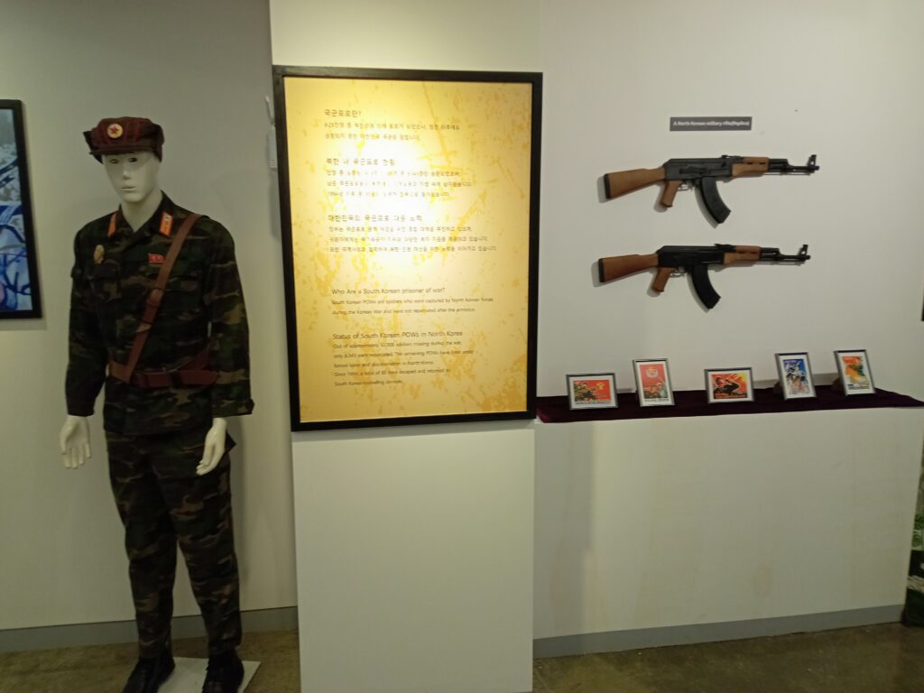 その後、脱北者の方と写真を撮り(プライバシーのため掲載は自粛します)、施設内の北朝鮮に関する展示物(お金やお菓子、制服や銃など)を見て、施設を後にしました。