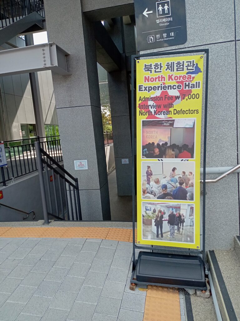 ここで、30分ちょっと自由散策(軽食を兼ねて)の時間ですが、公園内にある施設の中で、北朝鮮について知ることのできる場所があり、脱北者の方に話を聞くことができるとのこと。こちらは別途7000ウォン(カード払いも可能)で入れるので参加しました。