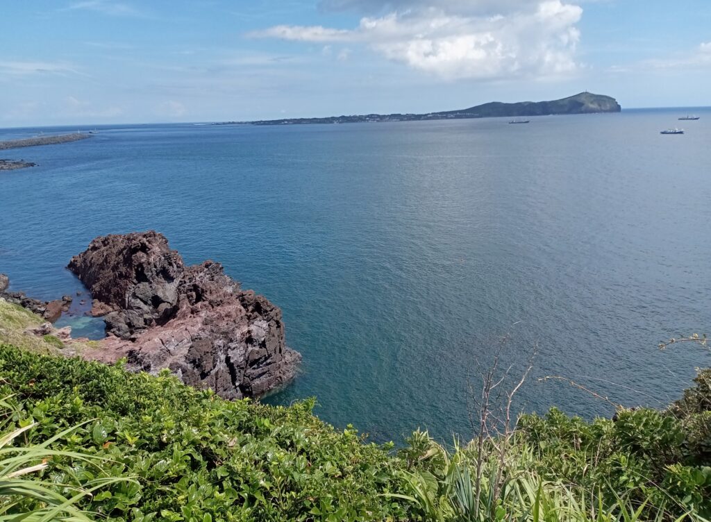 下山路の方には、海岸や近くの牛島を眺めるところもあります。最後までいろんな景色を楽しむことができます。