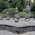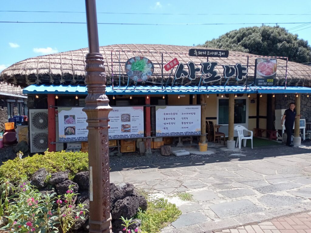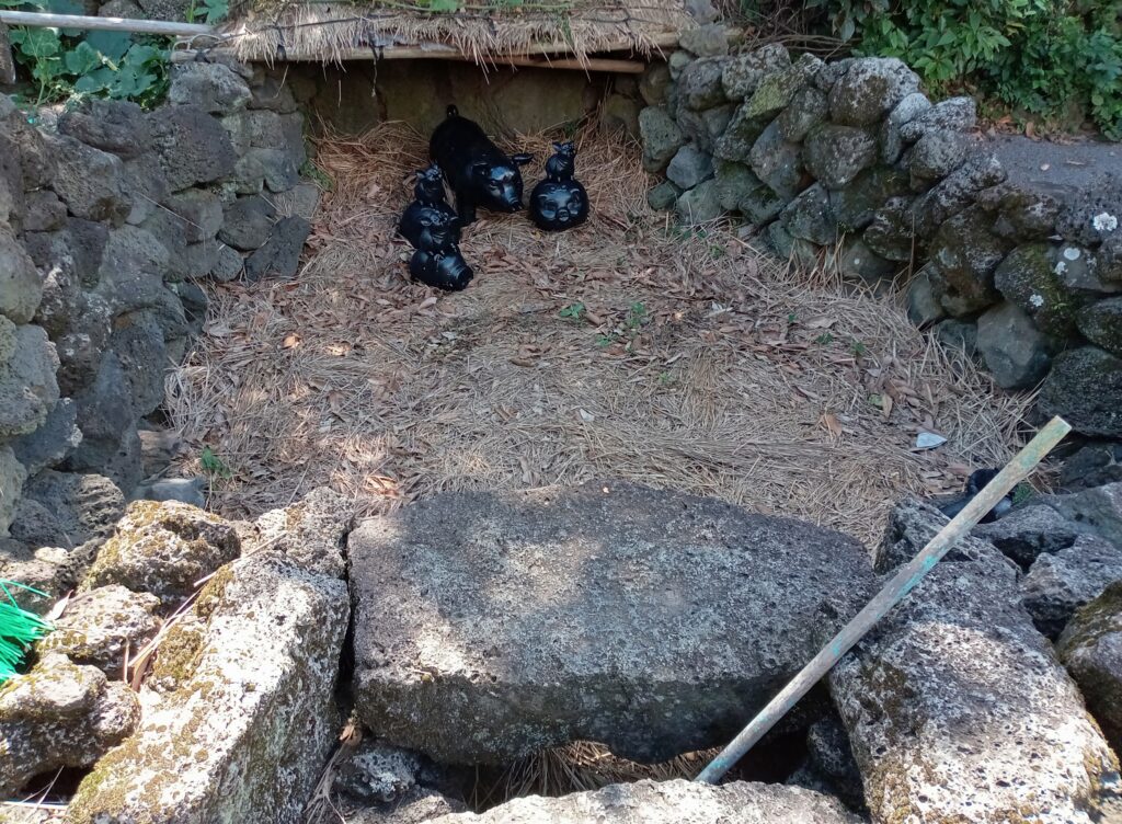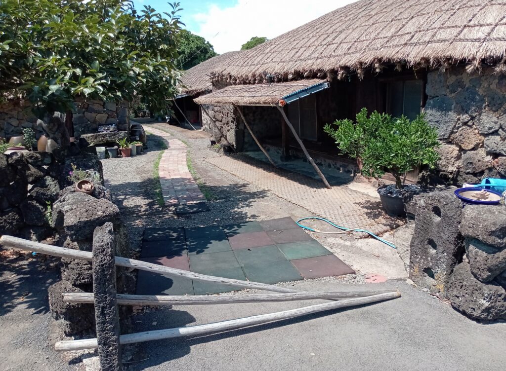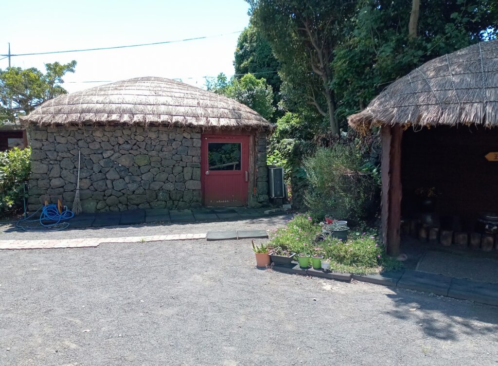 続いて向かったのは城邑民俗村。ここは、済州島の昔ながらの村の姿や暮らしぶりがそのまま残されていて、かつて済州島に住む人々の生活する姿を直接見ることができます。村の方に建物や生活について説明を受けながら見て回りました。