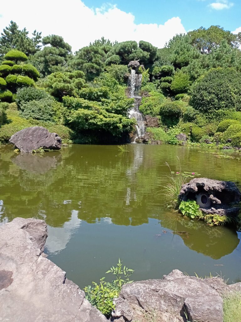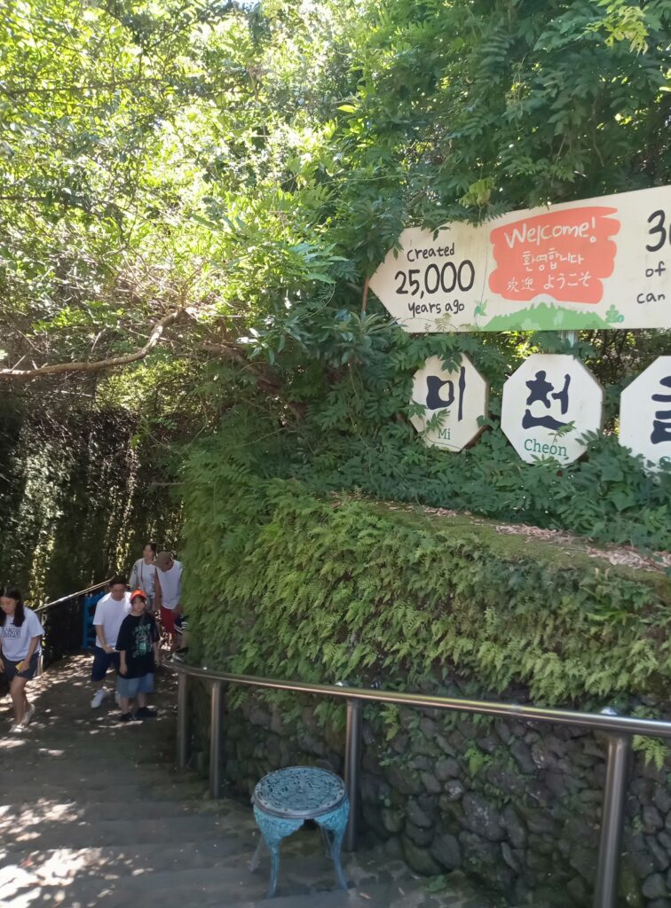 美味しい昼食をいただいた後は、美千窟へと向かいます。本来は、世界遺産の万丈窟という洞窟に行くのですが、崩落の危険があり閉鎖中ということで、代わりに「美しい千の洞窟」を意味する美千窟(ミチョングル)を訪れました。洞窟までは、きれいに整備された公園を歩いていきます。