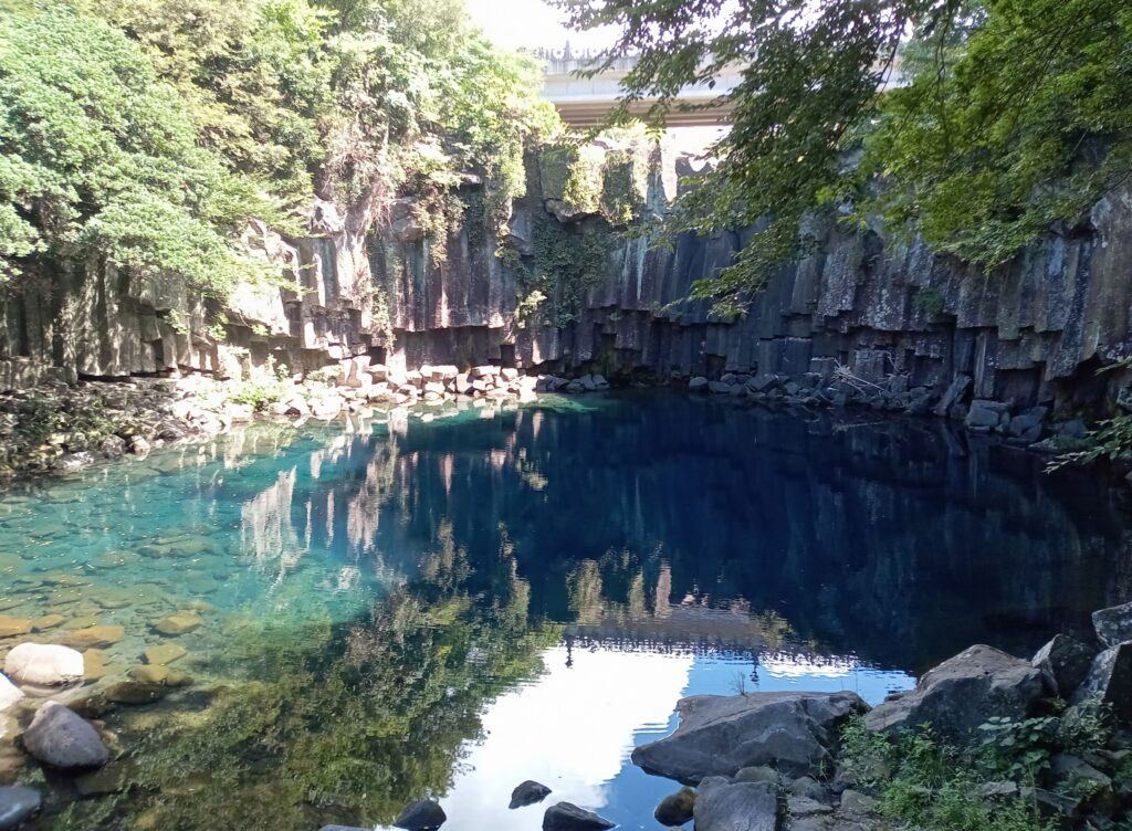 天帝淵に注ぐ第1段の滝。この滝は豪雨の後にだけ現れます(展望スペースの看板にも表記されていました)。ということで、天気が良い日が続いていたこの日は水は流れていませんでした。ただ、たまっている水はとてもきれいです。