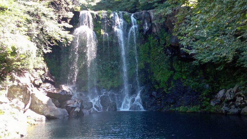 済州観光2日目は、島内バスを利用して南部の済州3滝(済州三大名瀑)と呼ばれる滝を巡ります。