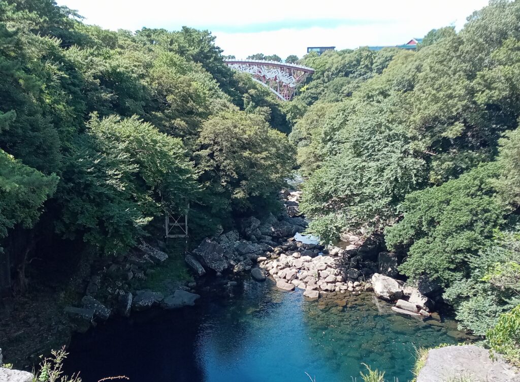 第3瀑布に行く前に途中、渓谷に掛かる橋、仙臨橋へと行きます。緑の多い渓谷を眺めることができます。