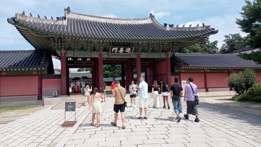 北半分は後苑と言われる庭園がありますが、こちらは広く、別途ガイドツアーが必要らしいので、見学はしませんでした。韓国最古の門である敦化門は修繕中らしく見ることはできませんでした。
