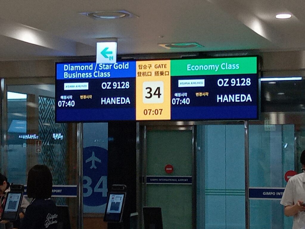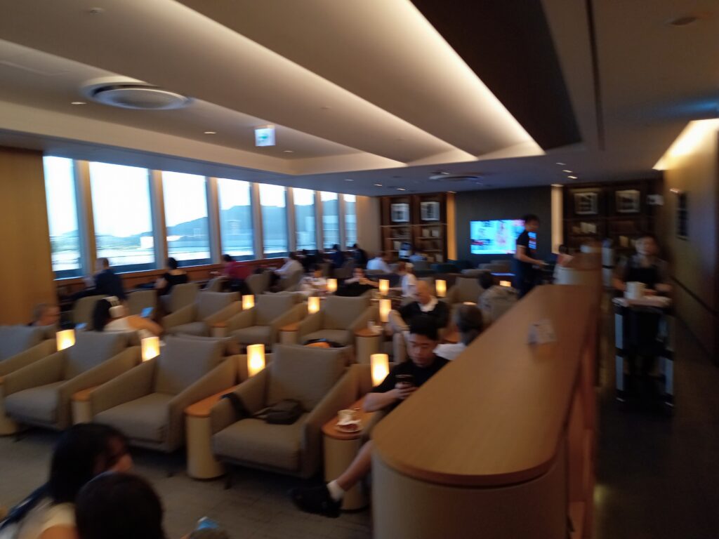 金浦空港では、スターアライアンス系のアシアナ航空のラウンジを使用できます。フライトまでそんなに時間がなかったので、ちょっとだけ行ってみました。ところが、すぐにANAから呼び出しがあり、ほんのちょっとのぞくことしかできませんでした。軽食と飲み物が少しあるくらいはわかりましたが、詳細はわからずじまいでした。