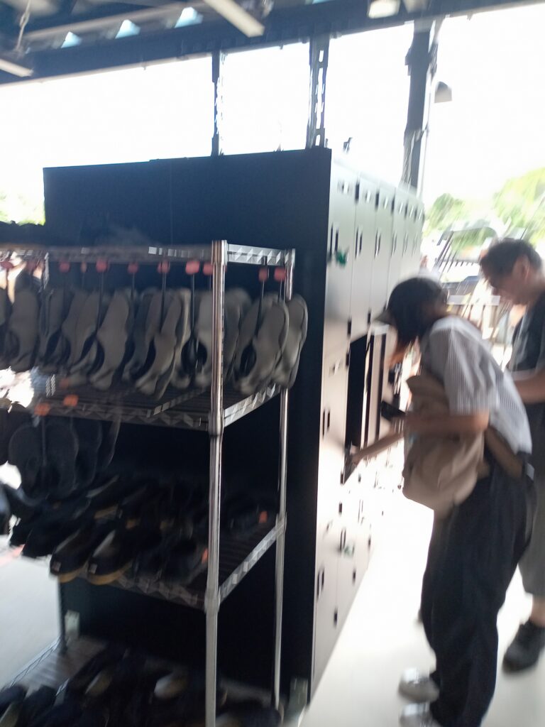 こちらも60分待ちの表示がありました。きっと夏休み中や土日はもっと混んでいることでしょう。そして、表示通りの60分くらい待ち体験できそうとなったところで、「雷雲接近のため一時中断します。」とのアナウンスが入りました。大きな天候変化はなかったものの、結局は80分ほど待って中へ入ることができました。