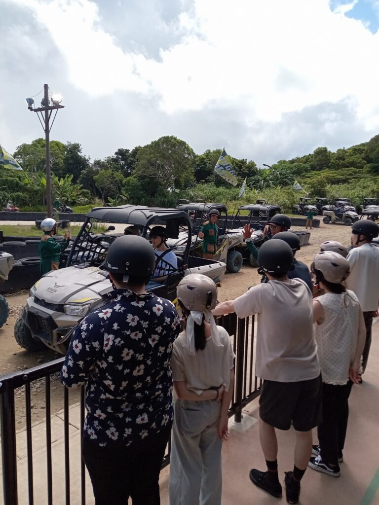 順番が来たら、荷物をロッカーに預け、ヘルメットを借りてかぶります。簡単に乗り方の説明を聞いて、乗車します(スマホやカメラなども預けなくてはいけないので、同乗者も含め、走行中の撮影は不可です)。
