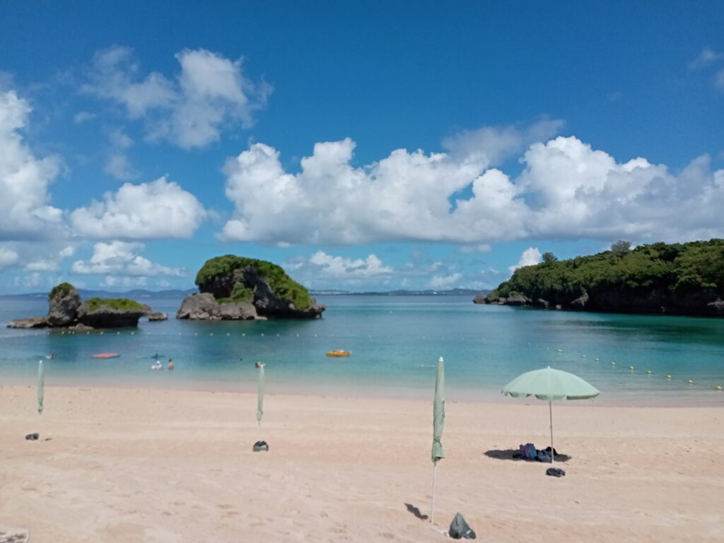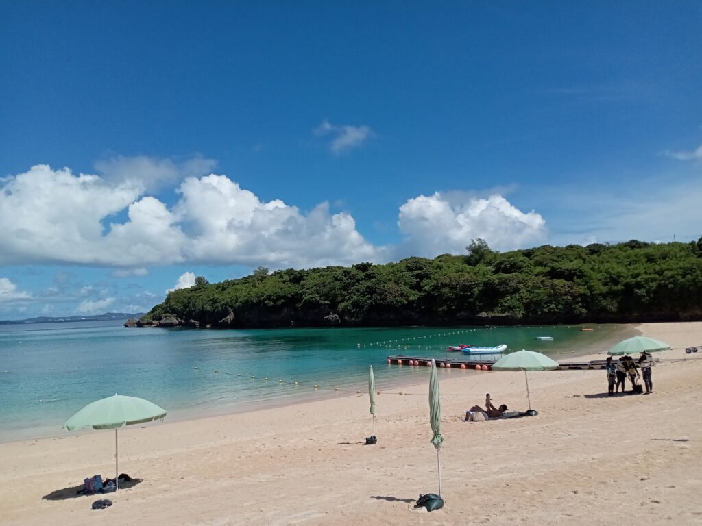 天気も良く、快適なドライブだったので、宮城島を通り越して海中道路の最も東にある伊計島まで渡り、伊計ビーチに寄ってみました。夏は海水浴場で賑わうビーチですが、この日は平日ということもあり人はまだら。海で泳ぐ予定はなかったので、きれいなビーチの写真だけ撮って後にしました。