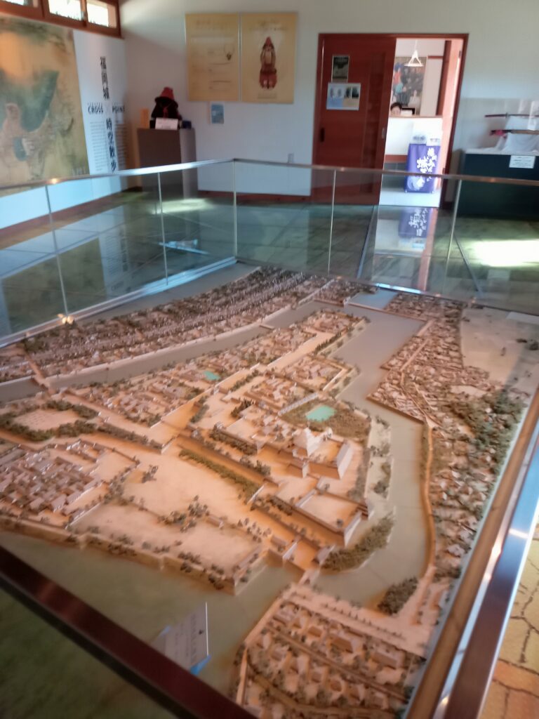 続いては、鴻臚館広場前にある福岡城むかし探訪館へ。ここは、それほど大きな建物ではありませんが、福岡城や城下のの再現模型があり、在りし日の福岡城を知ることができます。ちなみに登城記念御朱印販売場所にもなっています。