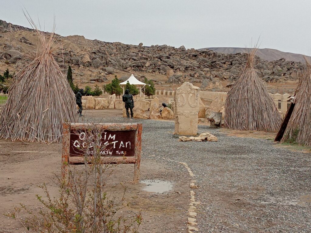 まずは、岩絵がある岩山の麓にあるゴブスタン博物館へと行き、概要を理解します。人骨や動物の骨、土器なども展示されており、古代の生活の様子をうかがうことができます。屋外にも復元した建物などがありました。