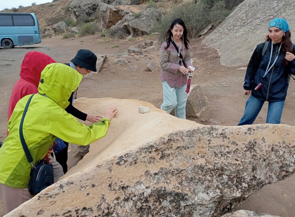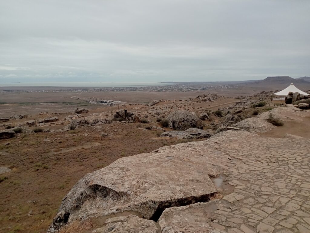 岩絵も素晴らしかったのですが、岩山は高いところにあるので、カスピ海を含め、周りの景色も素晴らしかったです。天気が悪いのだけが残念でした。