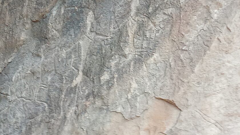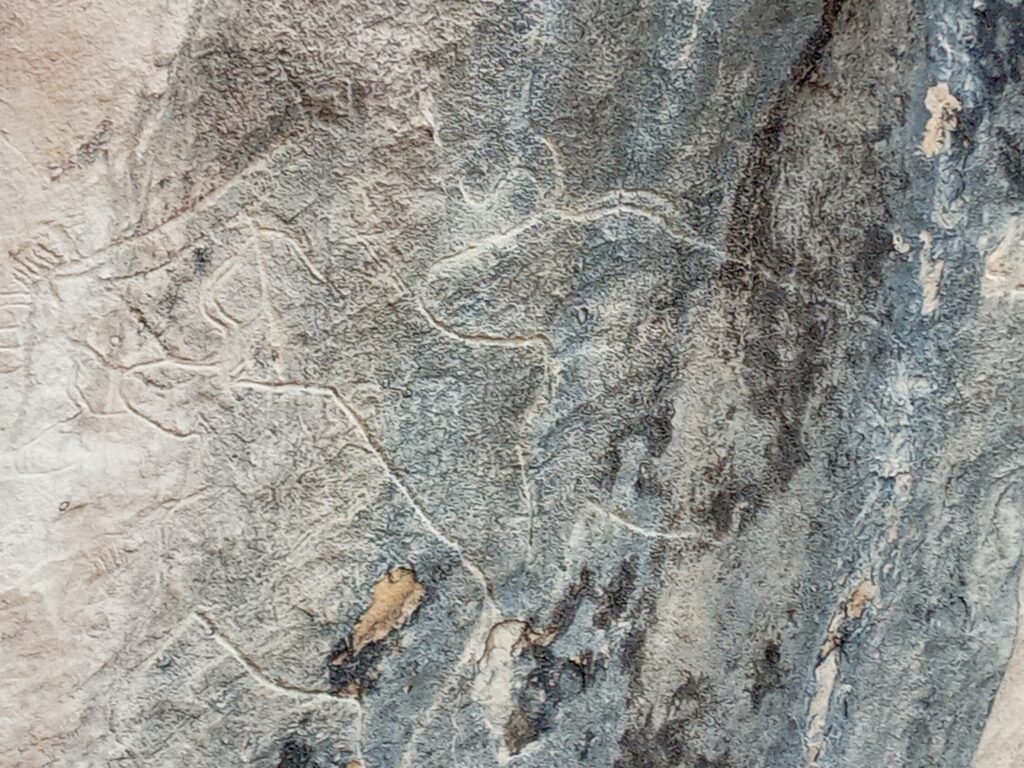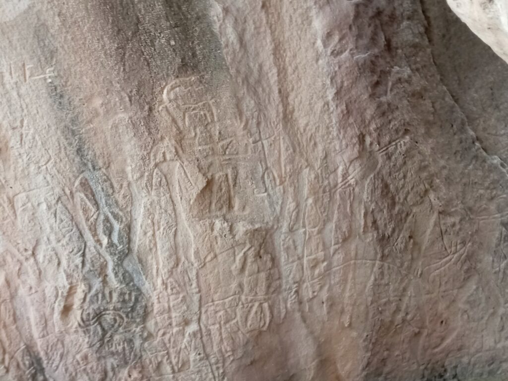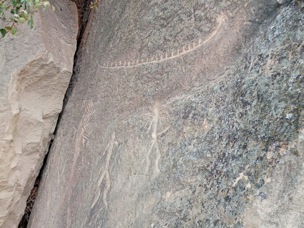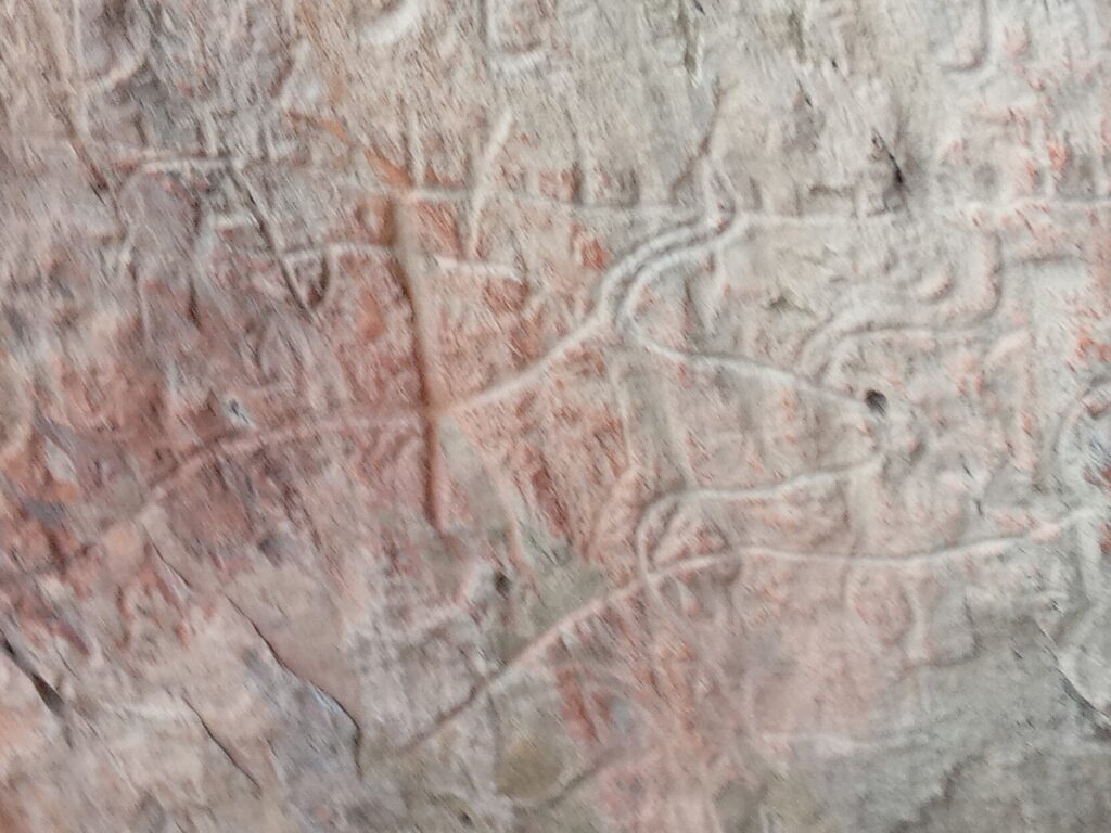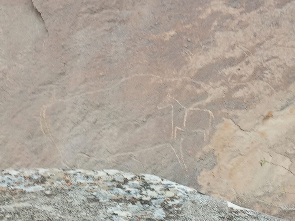 さて、岩絵の方ですが、踊る人や馬・牛など様々な絵を見ることができました。絵によっては、なかなかわかりにくいものもありましたが、主な絵の近くには説明の図もあるので、それと照らし合わせて見るとわかりやすいかもしれません。