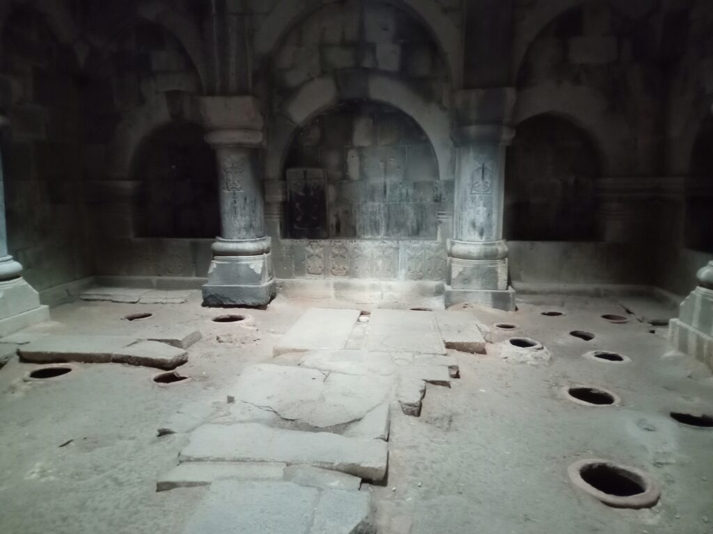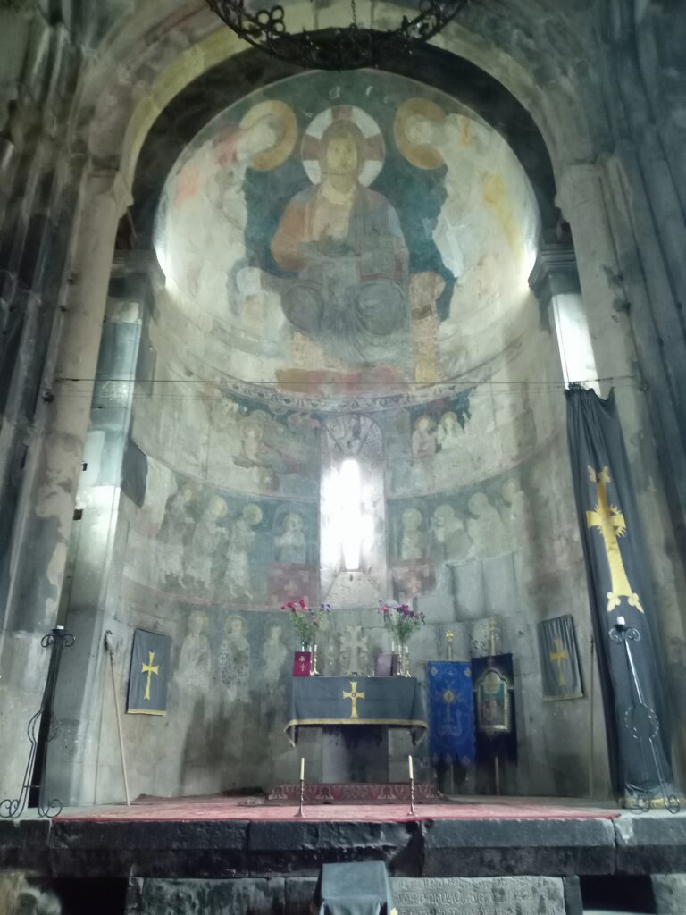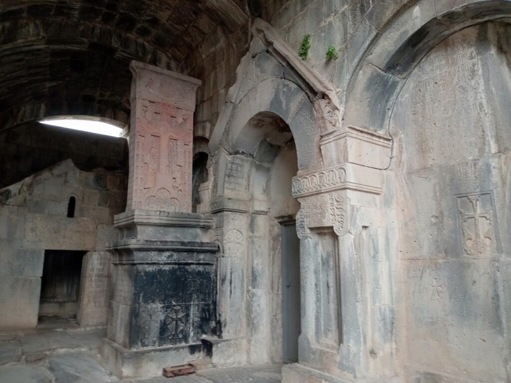 ちなみにアルメニアは、キリスト教を国教にした世界最古の国です。途中、アラブ人の侵入で発展の中断を余儀なくされましたが、再独立を果たした後、10世紀末にここの修道院が完成したそうです。教会の中には、イコンの代わりに石の十字架がありました。