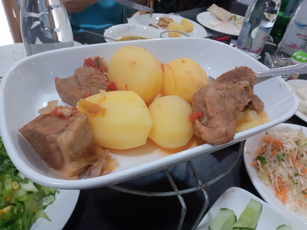 修道院を出た後は、近くのレストランで昼食です。蒸した牛肉やポテト、サラダなどを美味しくいただきました。