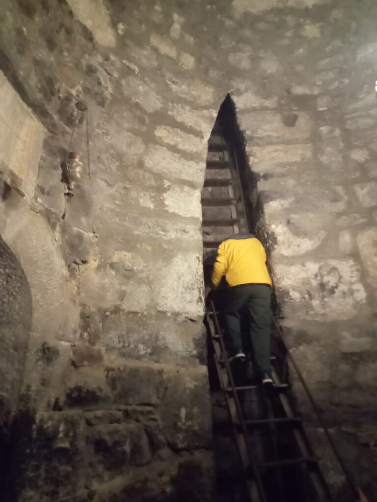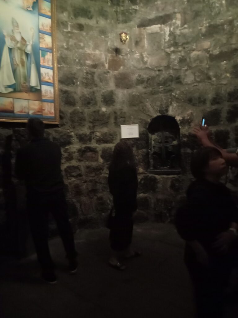聖ゲヴォルグ礼拝堂には、啓蒙者グレゴリウスが閉じ込められていた地下牢があり、そこに入ることができます。人1人が通れる狭い入口から、垂直の梯子で約7、8mほど下りると、少し広くなった空間があり、そこが牢(小部屋)となっています。
