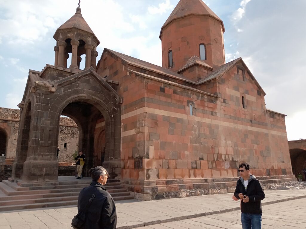 その後、この修道院からもアララト山を眺めます。大アララト山の雲がなかなかとれないのがなんとも惜しいですね。