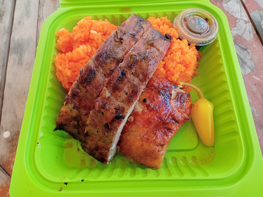 SUPを終えた後は、海から上がりしばしパラソルの下で休憩。そして、昼食(料金に入っています)をいただきました。