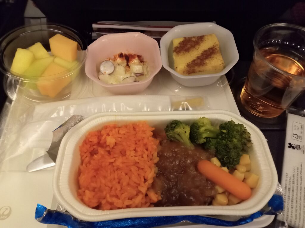 飛行機は予定通り出発。映画を1本見て機内食を取ったら、予定よりも早く成田空港に到着しました。