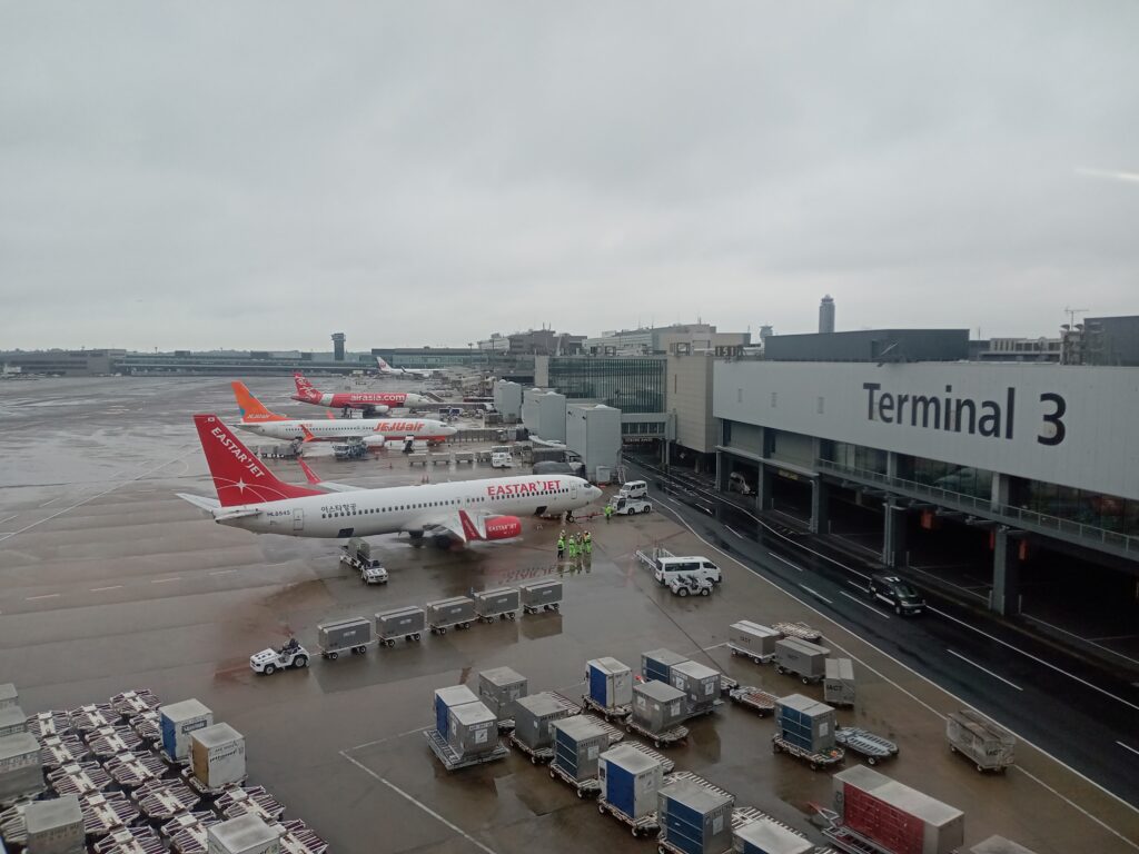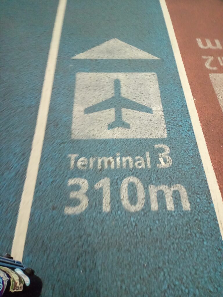 フライトは第3ターミナルなので移動します。第2ターミナルから第3ターミナルへはシャトルバスでも歩きでも行けます。