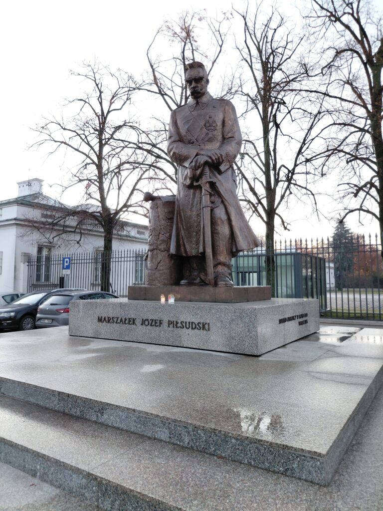 公園の入口には、第一次世界大戦後に成立したポーランド共和国(1918~1939)の初代国家元首ピウスツキの像が立っています。
