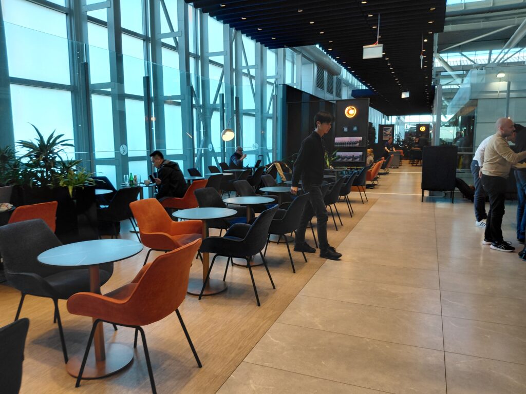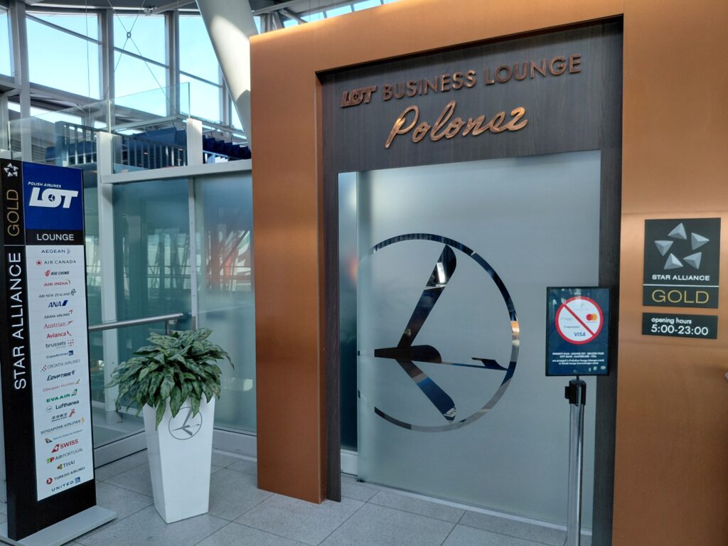 フライトまでは搭乗口まで少し遠いのですが、ここでもラウンジを利用します。スターアライアンスゴールドで利用できるのは、LOTビジネスラウンジ・ポロネーズです。