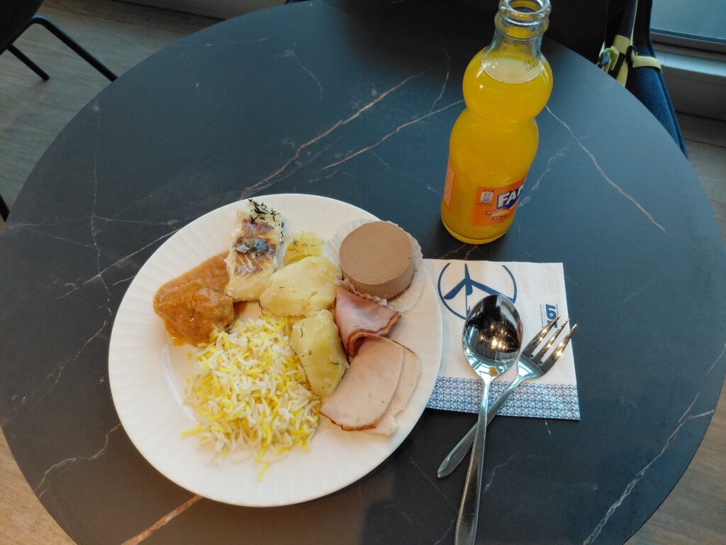 シェンゲン協定間の移動なので、イミグレもなくまっすぐ搭乗口へ行き、ヴィリニュス行の便に乗ります。フライトは1時間程とあっという間ですが、機内では軽食が出ました。