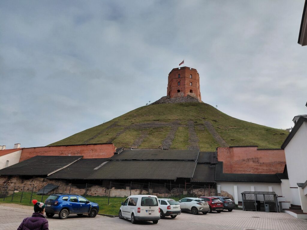 降りると、そこにはかつての城壁の塔であるゲディミナス塔が立っています。また、高いところから見下ろす街並みも素晴らしいです。