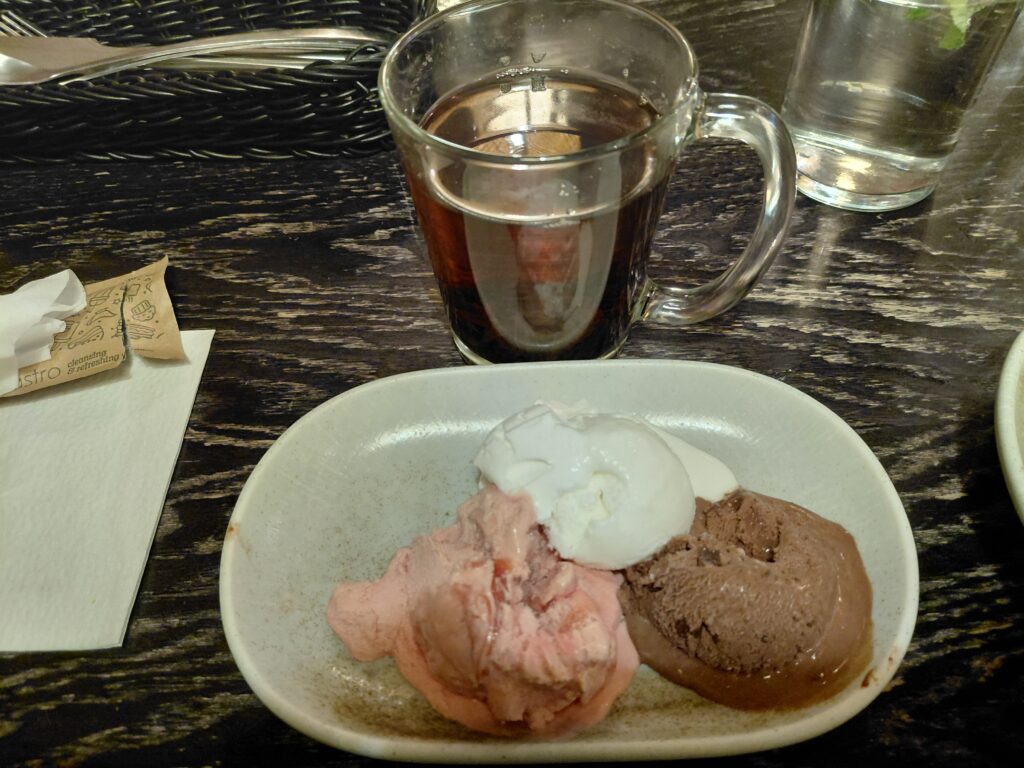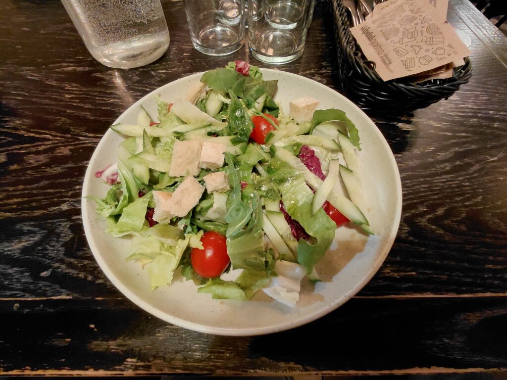 自由観光後の夕食は市内のレストランでいただきました。けっこう動き回ったせいかお腹が空いていたので、少し物足りなさはありました。