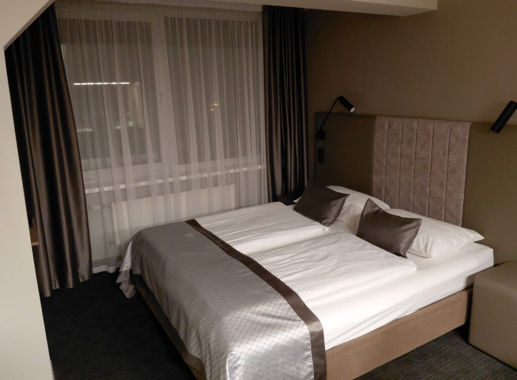 今回泊まるホテルは、BELLEVUE PARK RIGA(ベルビューパークリガ)です。市街地からは少し離れていますが、トラムの停留所がすぐ近くにあり、翌日午後の自由時間の後も、迷うことなく戻ってこられそうです。