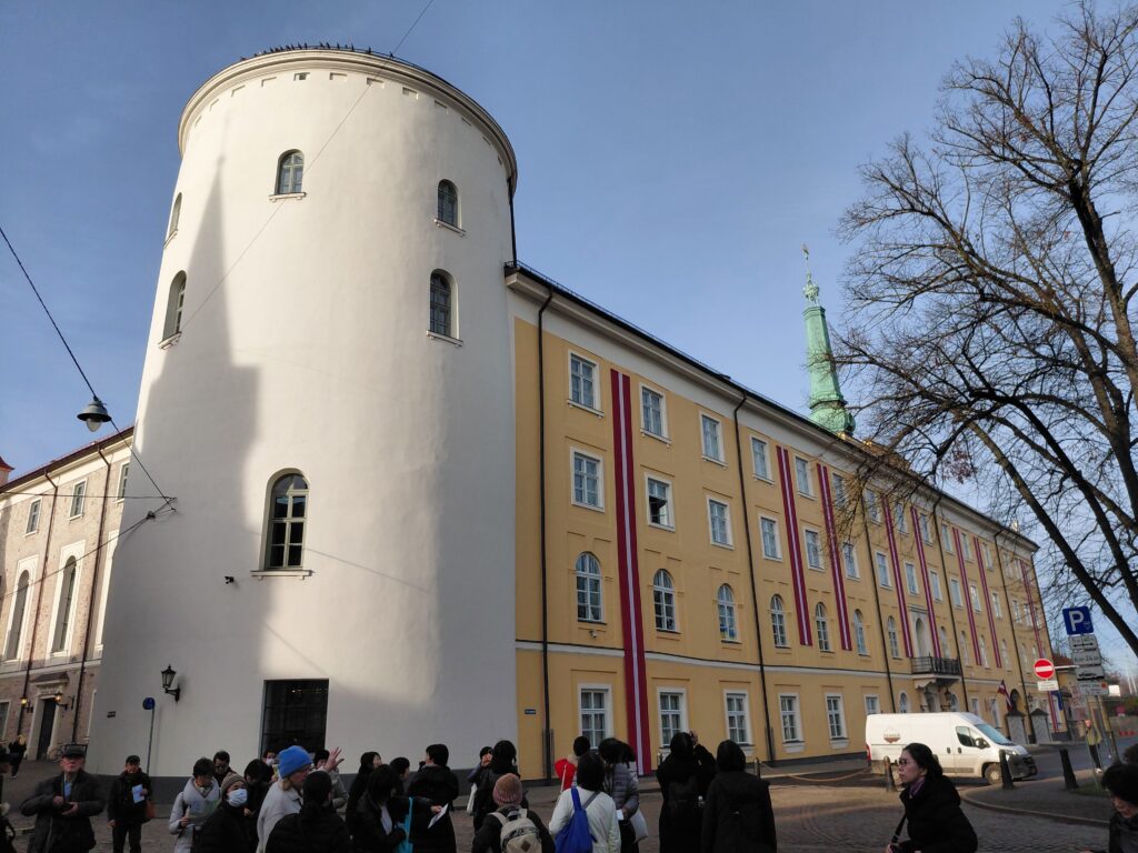 中央市場の見学(買い物の時間も少しありました)を終えると再びバスに乗り、旧市街へと向かい、リガ城の近くで降り、歩いて様々所を見て回ります。