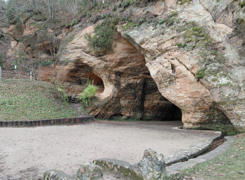 トゥグルダ城から歩いて着いたのが、グートゥマニャ洞穴。ここは、高さ9m、深さ14mの赤砂岩の洞穴です。