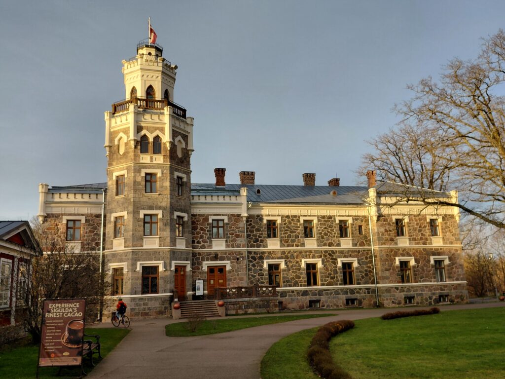 スィグルダ新宮殿は、19世紀末に建てられたネオゴシック式の宮殿。宮殿の奥には、度重なる戦争で破壊されたスィグルダ城址を見ることができました。