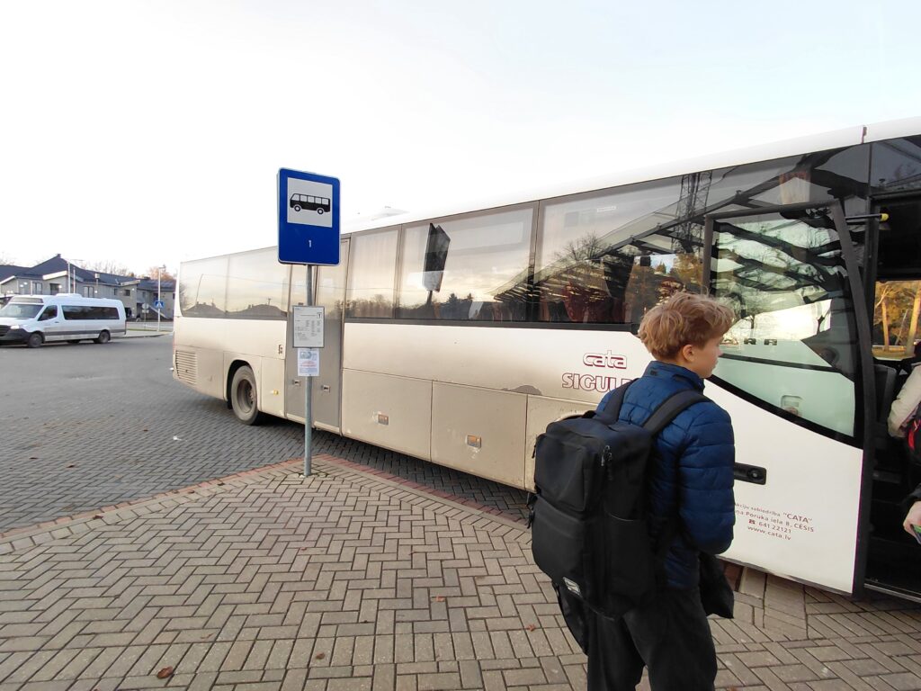 宮殿を出たら、再び徒歩で駅まで向かいます。駅に着くころにはかなり日も傾いてきていました。時刻表を見るとバスが出た後だったようなので、近くで食事をとろうかと思ったら、なんと遅れてリガ行のバスが到着。ロスなくバスに乗ることができました。