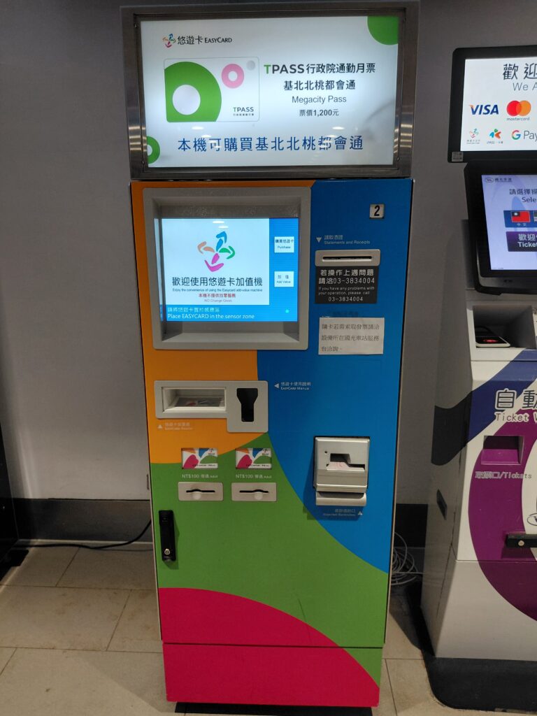 待っている間に以前の旅行の時に購入していた台湾のほぼ全土で使えるICカード、悠遊カードにお金をチャージします(ちなみに空港から台中までのバス代も悠遊カードで支払いしました)。