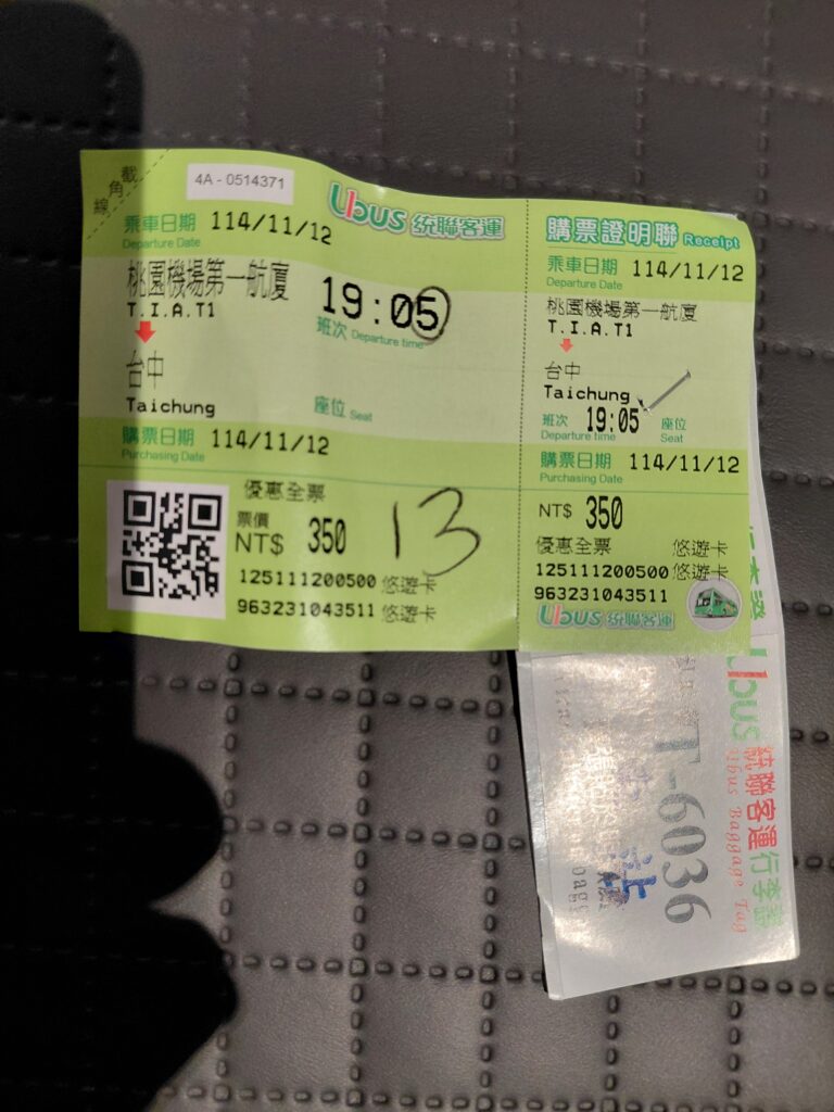 バスターミナルへ行き、台中行のバス乗り場と時刻を確認します。直接バスで支払いかと思いきや、ターミナルで購入してからとのことでチケットを購入して待ちます。