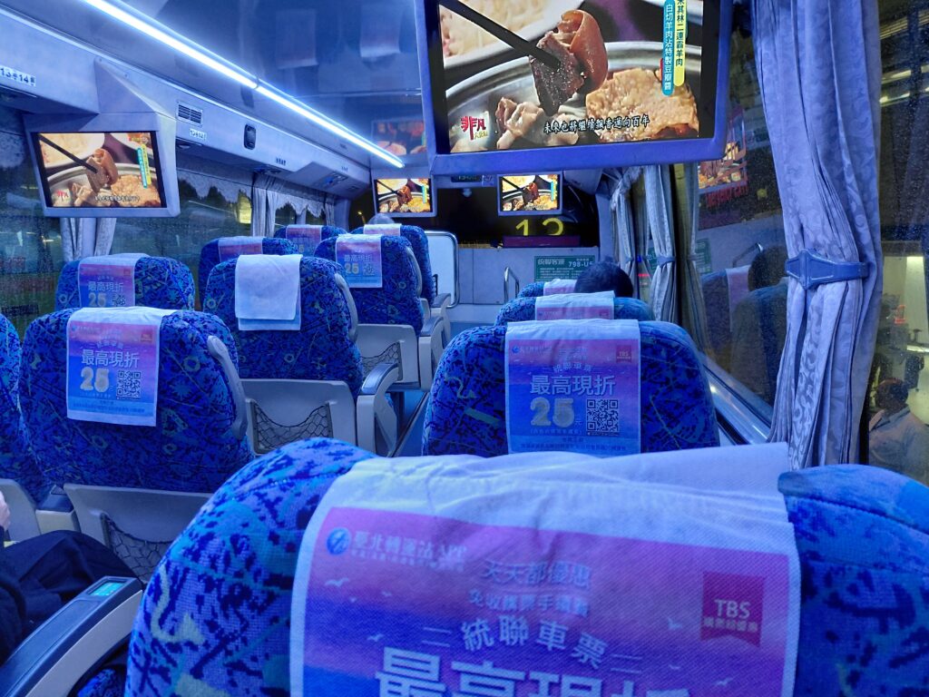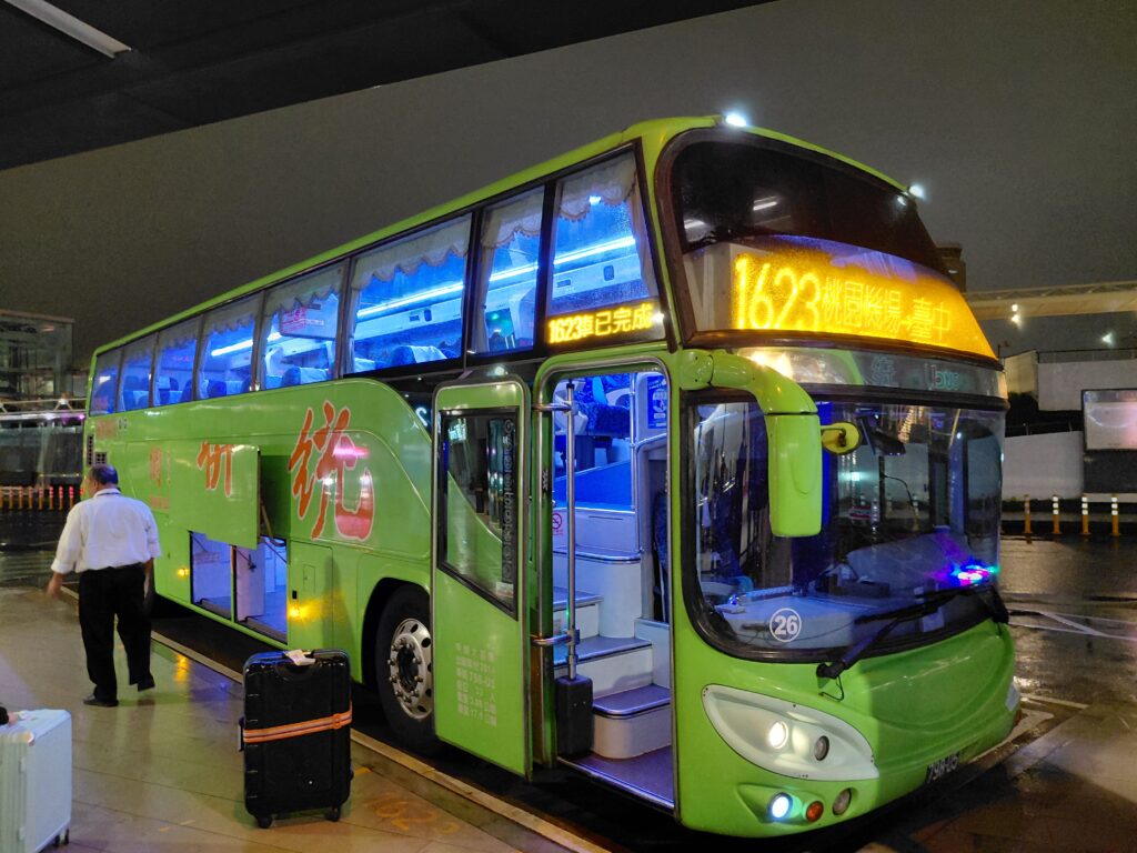 バスは予定通り桃園空港を出発し、高速道路に乗って台中を目指します。車内も特に気になるところもなく充電もできて良かったです。