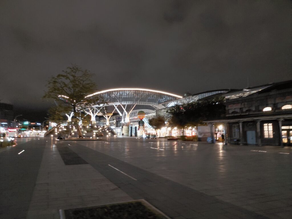 チェックインを済ませたら、駅前のコンビニに行き、翌日の朝食を購入しました。ついでに台中駅旧駅舎と現台中駅を写真に収めてきました。