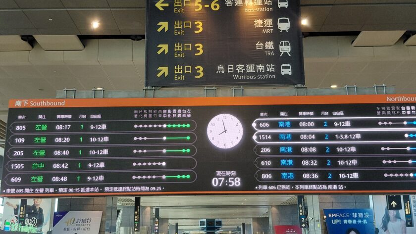 まずは、宿泊していたホテルからすぐ近い台鐵台中駅から高鐡台中駅へと向かいます。同じ台中でも台湾鐵道と高速鐵道の駅は離れているので、利用の際には注意が必要ですね。